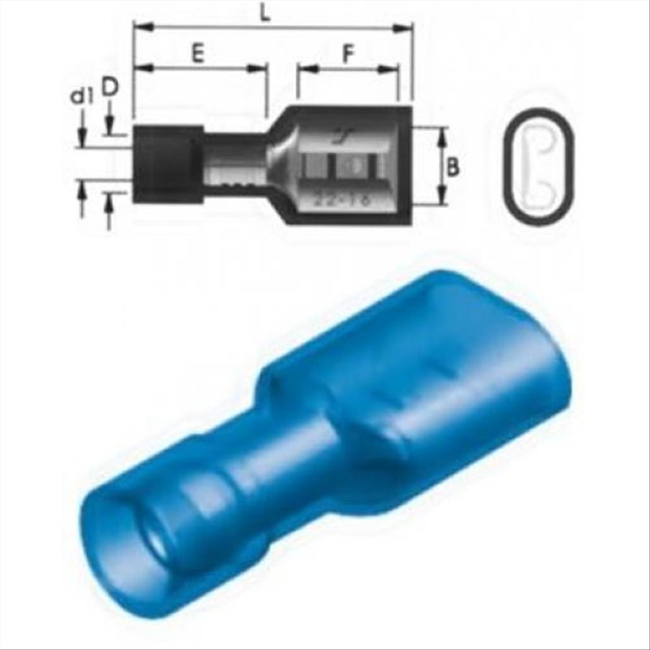 Κατάστημα / Ηλεκτρολογικά - Βιομηχανικά / Ηλεκτρολογικό Υλικό / Ακροδέκτες – Κως / Ακροδέκτης συρταρωτός, καλυμμένος με nylon (χωρίς αυλάκι), θηλυκός, μπλε, F2-6.4AF-T/8 JEE