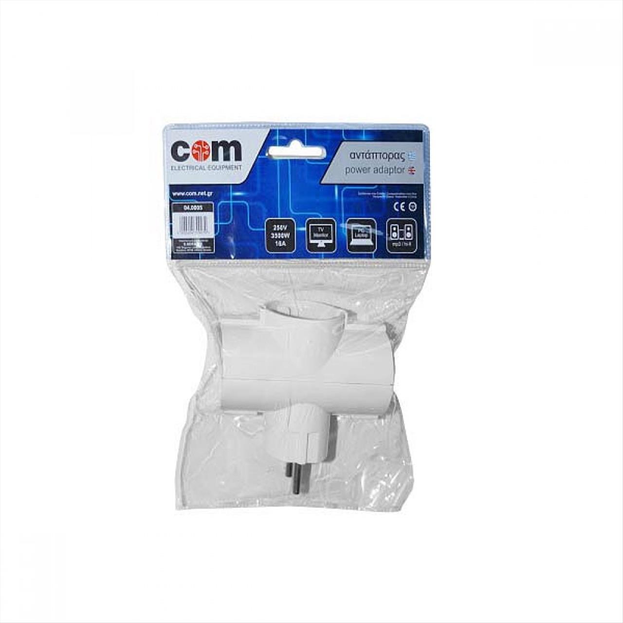 Αντάπτορας ρεύματος (σταυρός) χωρίς διακόπτη, 3 x schuko, λευκός, COM