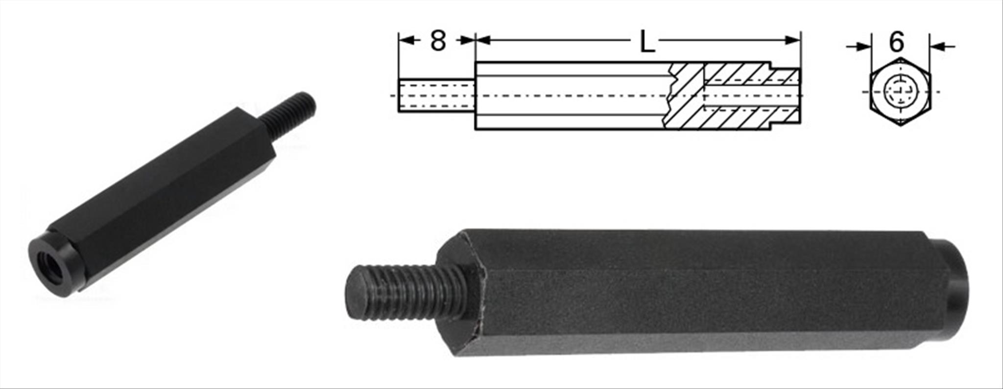 Τεχνικά χαρακτηριστικά: – Εξάγωνος αποστάτης. – L=6mm, M3 – Xρώμα: Mαύρο