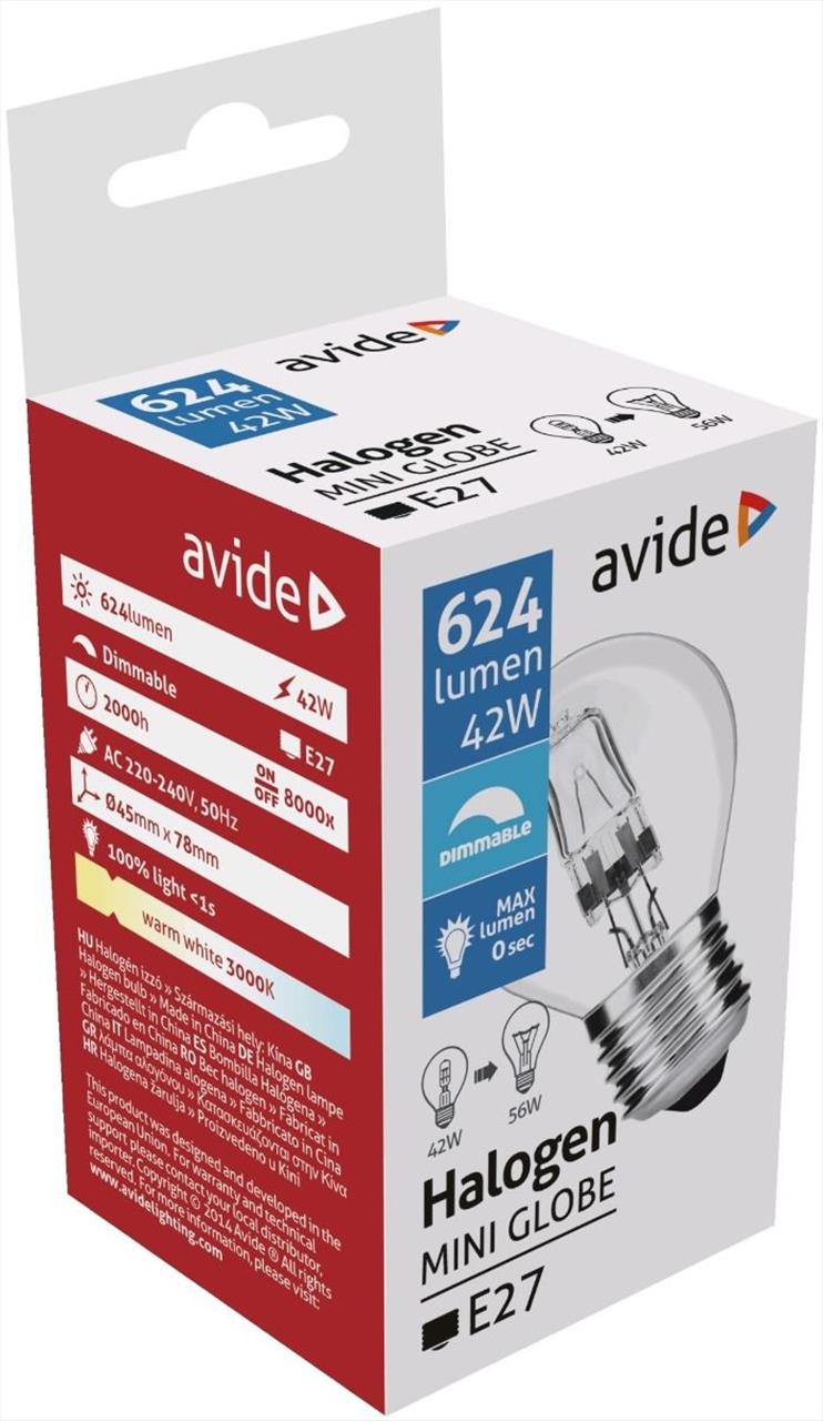 Λάμπα αλογόνου Avide, σφαιρική, 42W, E27, θερμό φως (3000K)
