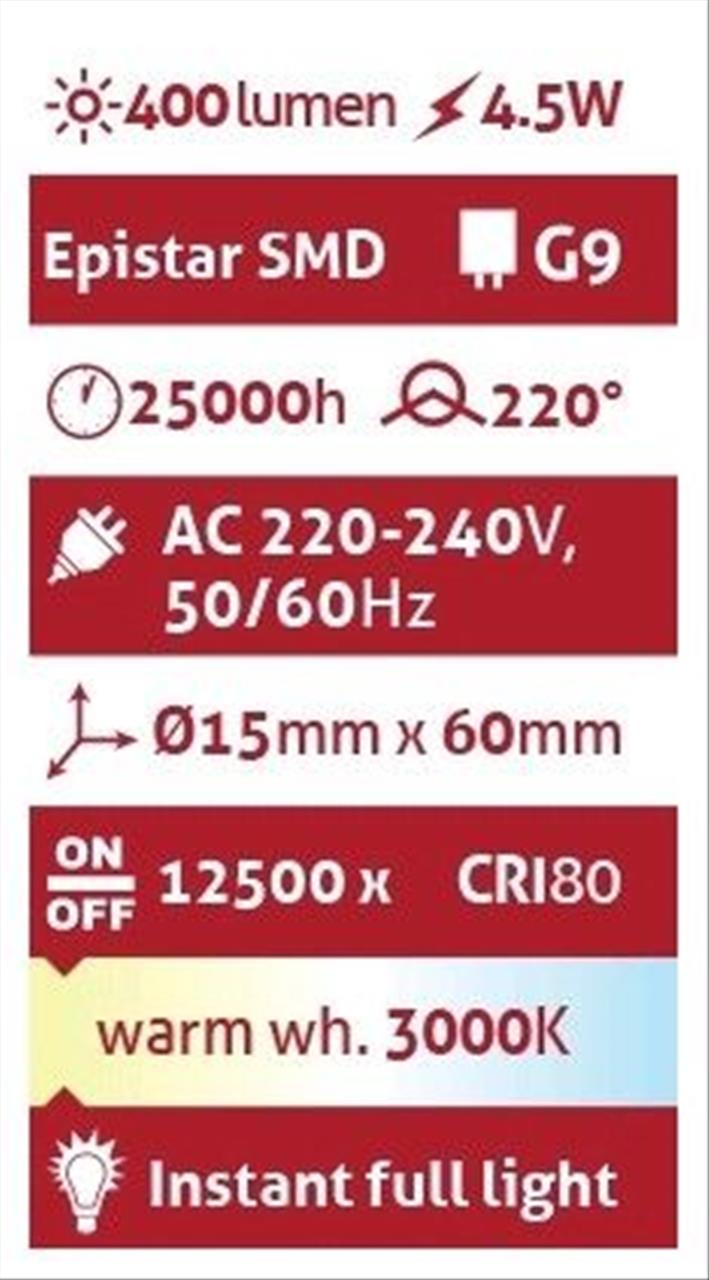 Λάμπα Avide LED, 4.5W, G9, 220°, θερμό φως(3000K)