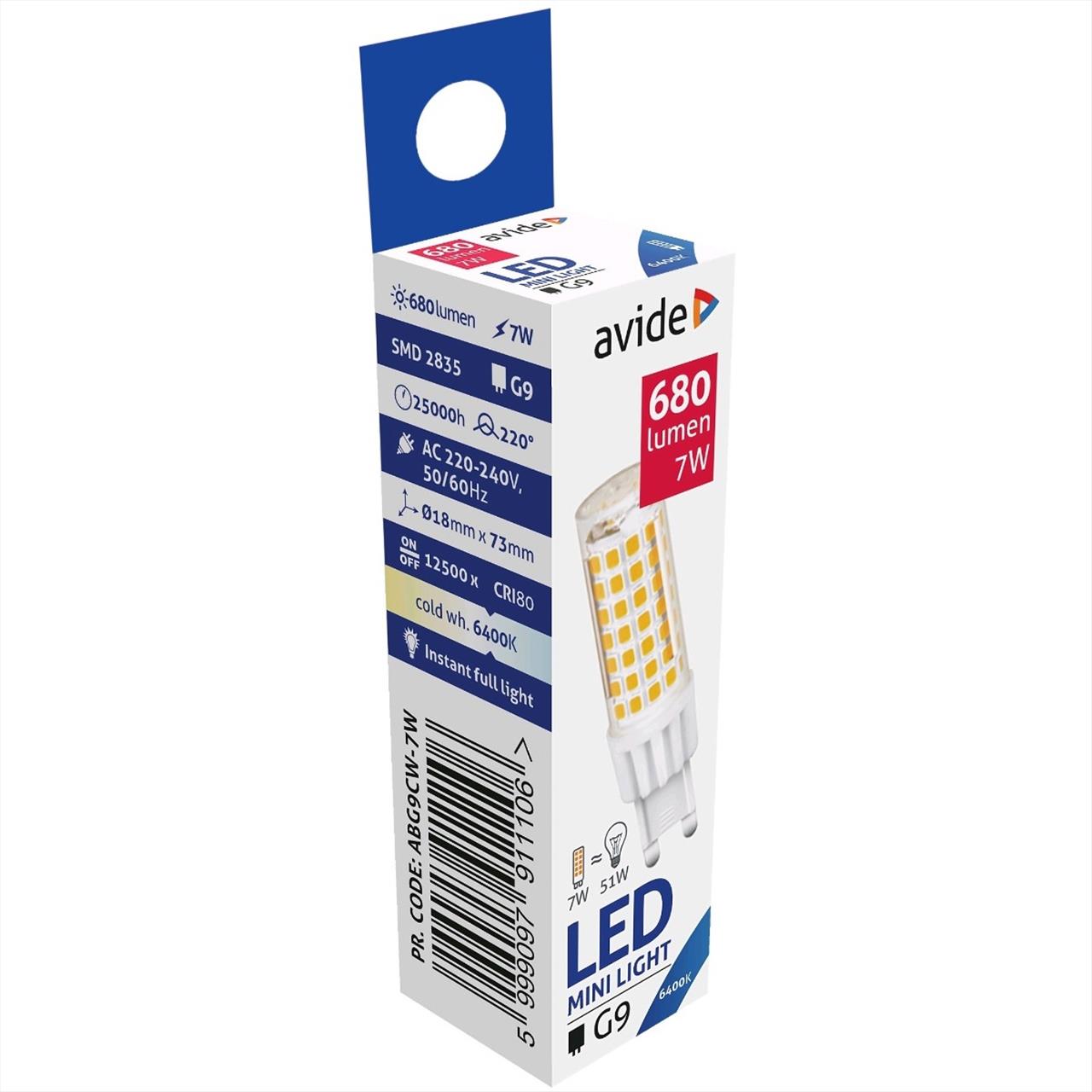 Λάμπα Avide LED, 7W, G9, 220°, ψυχρό φως(6400K)