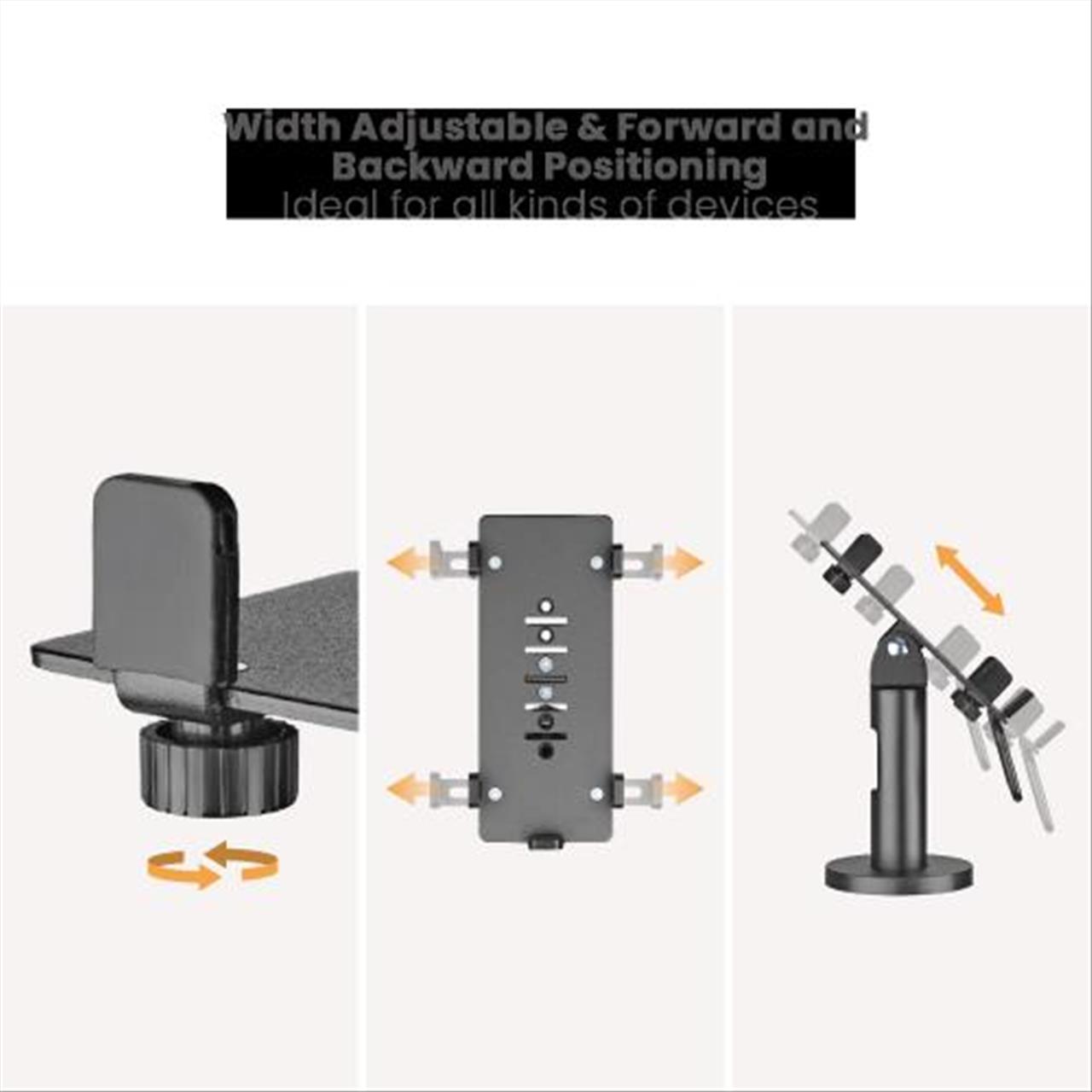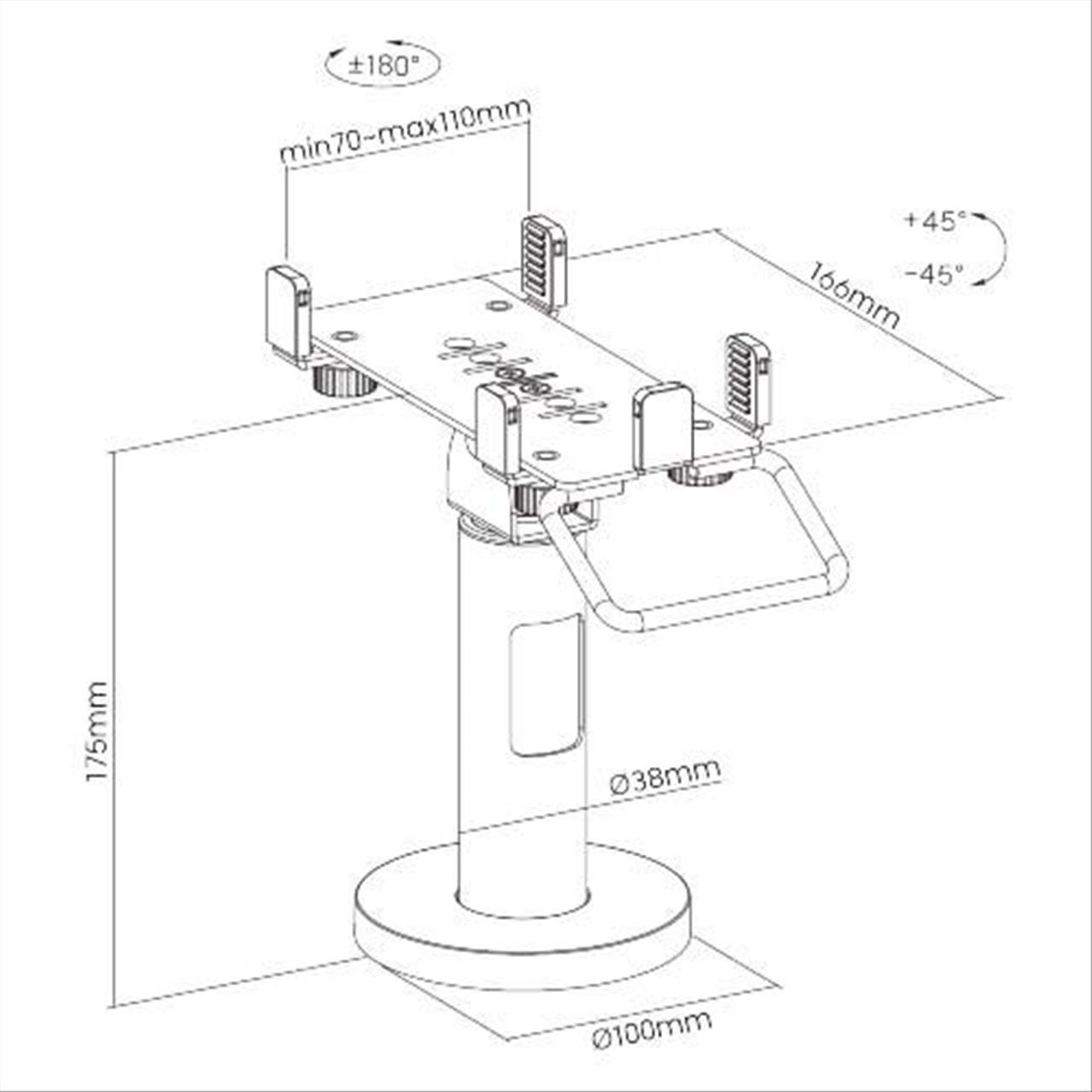 Το PTS-05 είναι ένα τέλειο στήριγμα για την ασφαλή τοποθέτηση του τερματικού της πιστωτικής κάρτας σε έναν πάγκο με βιδωτή βάση. Οι σφιγκτήρες στερέωσης με ρυθμιζόμενο πλάτος μπορούν να ρυθμιστούν ώστε να ταιριάζουν σε συσκευές πλάτους 2.8″-4.3″ και ο πίνακας μπορεί να κινείται προς τα εμπρός και προς τα πίσω για ευέλικτη τοποθέτηση. Περιστρέφεται 360° και γέρνει προς τα πάνω ή προς τα κάτω για εύκολη πρόσβαση. Η ενσωματωμένη διαχείριση καλωδίων διατηρεί τα πάντα καθαρά και κρυμμένα.