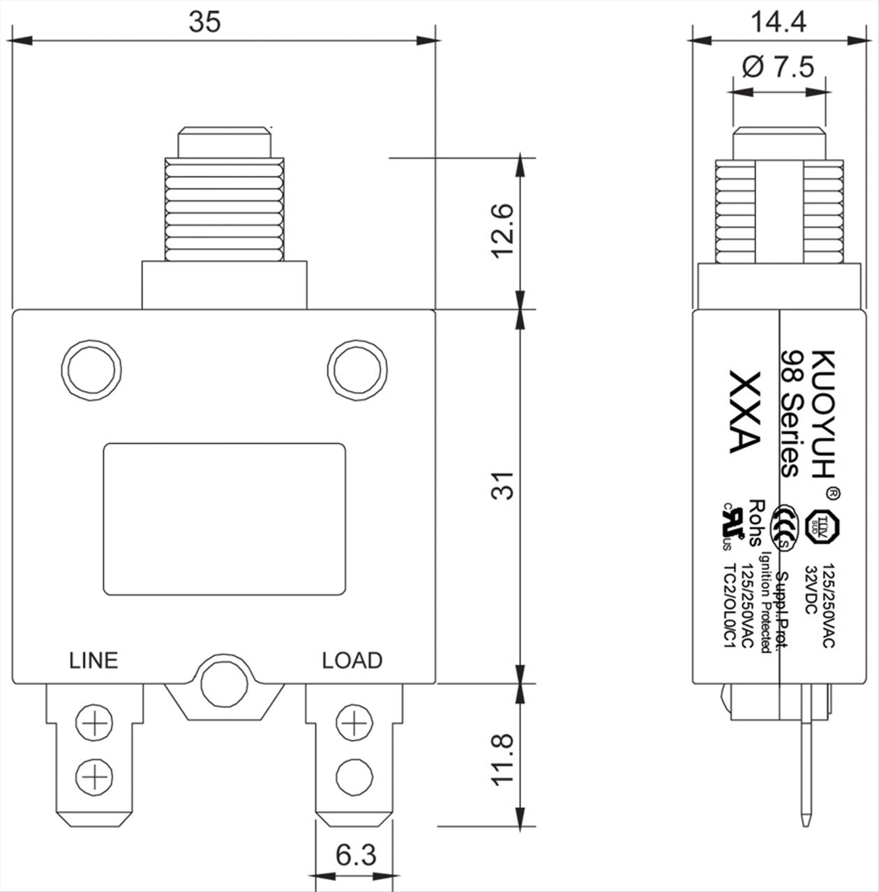 Θερμική ασφάλεια, υπερέντασης, 5A, (98-05-A1B14-B0B-B) KUO