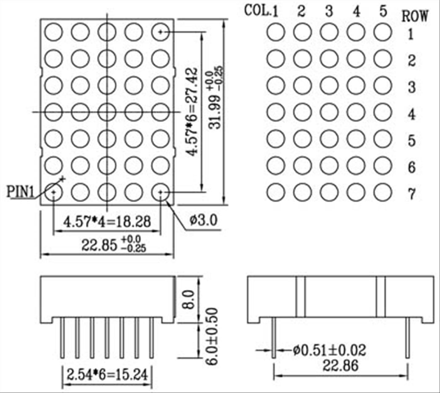 Display LED matrix 5×7, κόκκινο, καθόδου, HI 1157AHB TOS