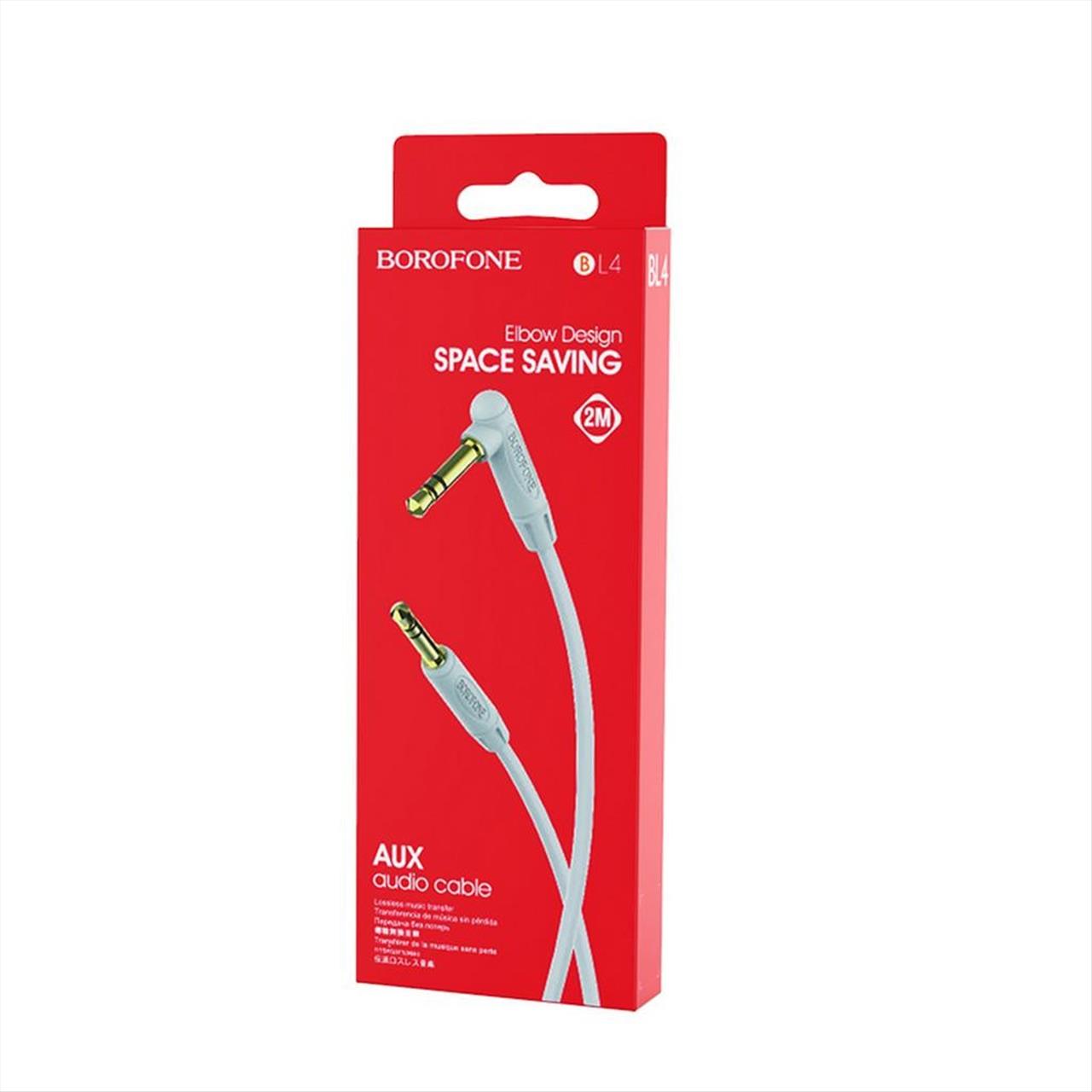 Καλώδιο ήχου Borofone BL4 γκρι, 3.5mm αρσενικό σε 3.5mm αρσενικό γωνιακό, 2m.