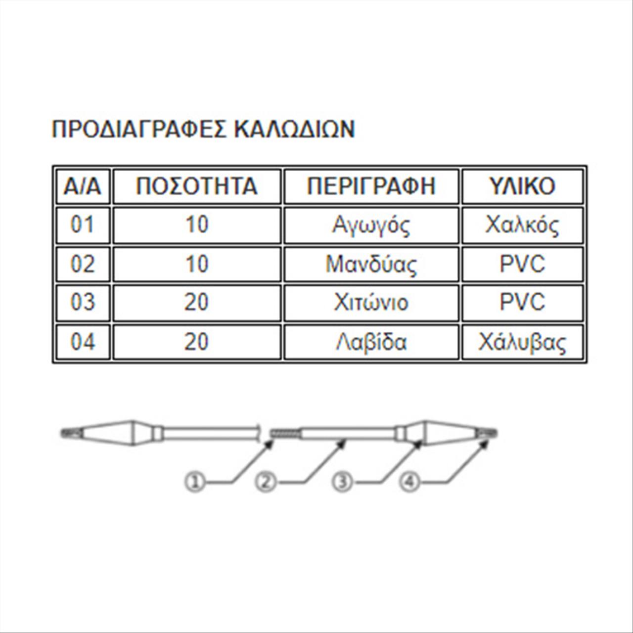 – Αντοχή διηλεκτρικού: 4kV, 10mA, 1min (oι αγωγοί στον εξωτερικό μανδύα)