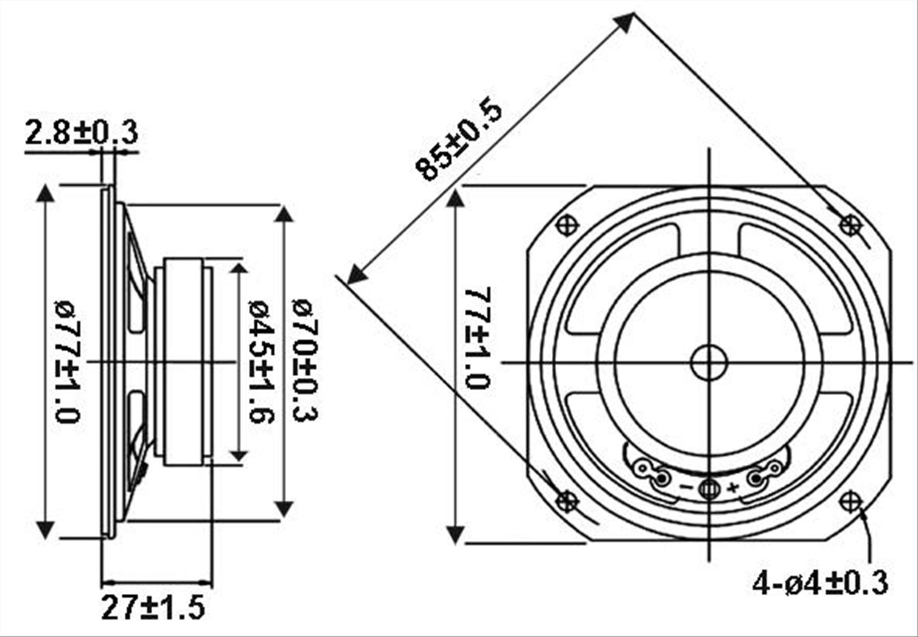 Μεγάφωνο 77x77mm, 8Ω, 3W, MYLAR EKS7777 EKS