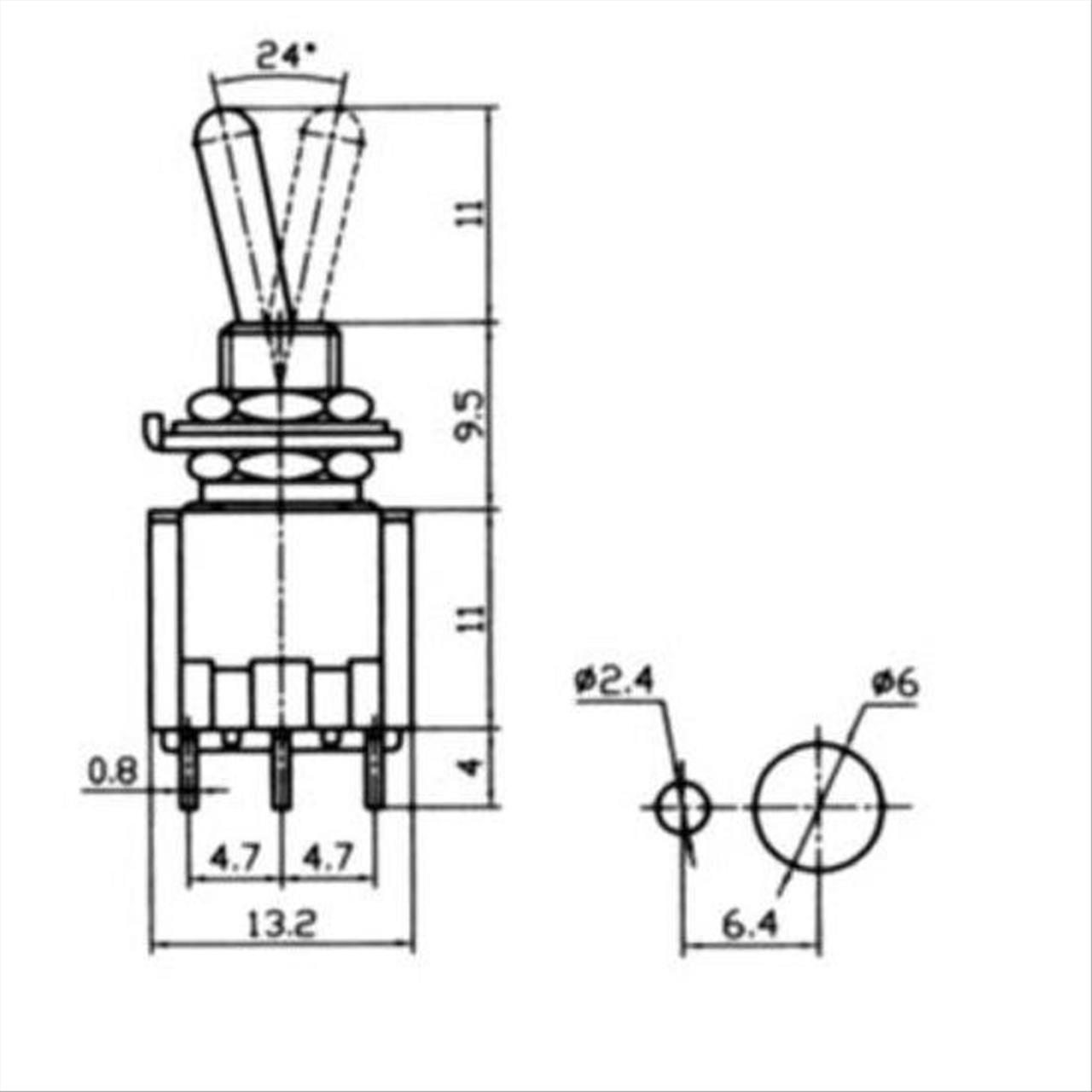 Διακόπτης toggle on-on, mini, τριπολικός, 9P, 2A/250V, MTS-302-A1 YNX