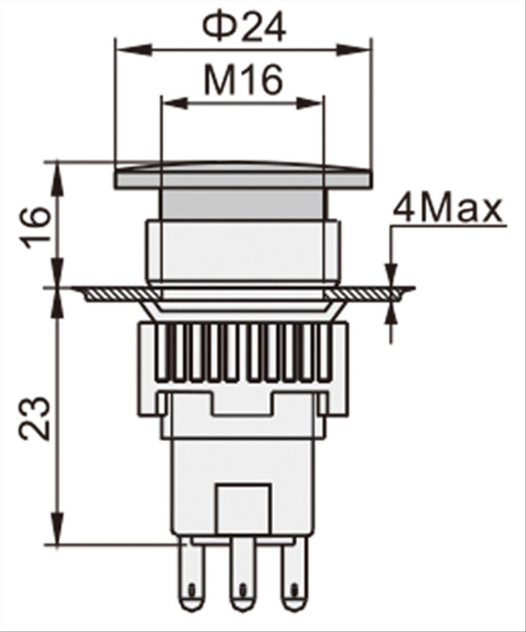 – Button μανιτάρι βιδωτό με λυχνία και συγκράτηση Φ16.