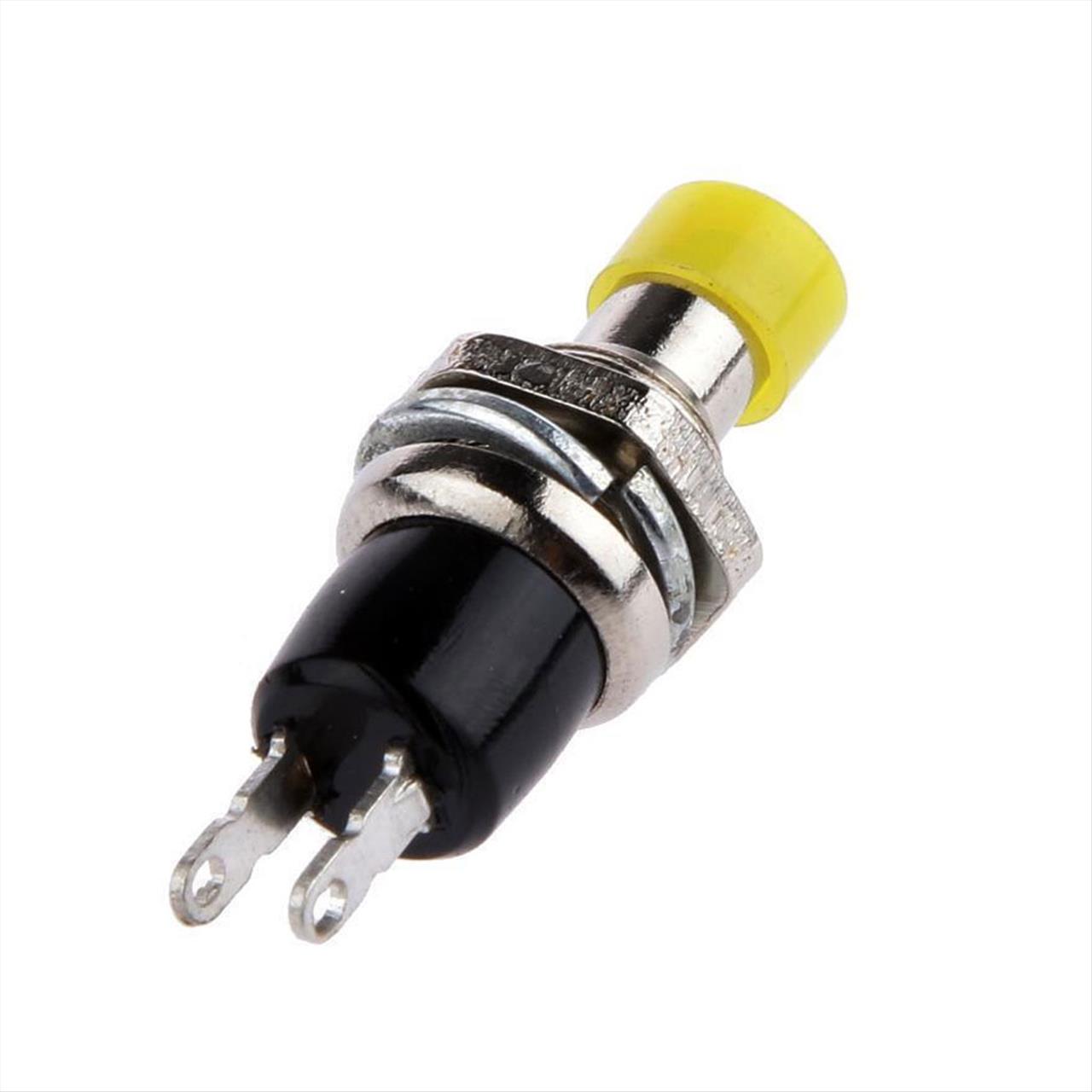 Διακόπτης button push on, 2P, Φ7, 3(1.5)A/125(250)V AC, μεταλλικός κίτρινος, PB05B-Y HNO
