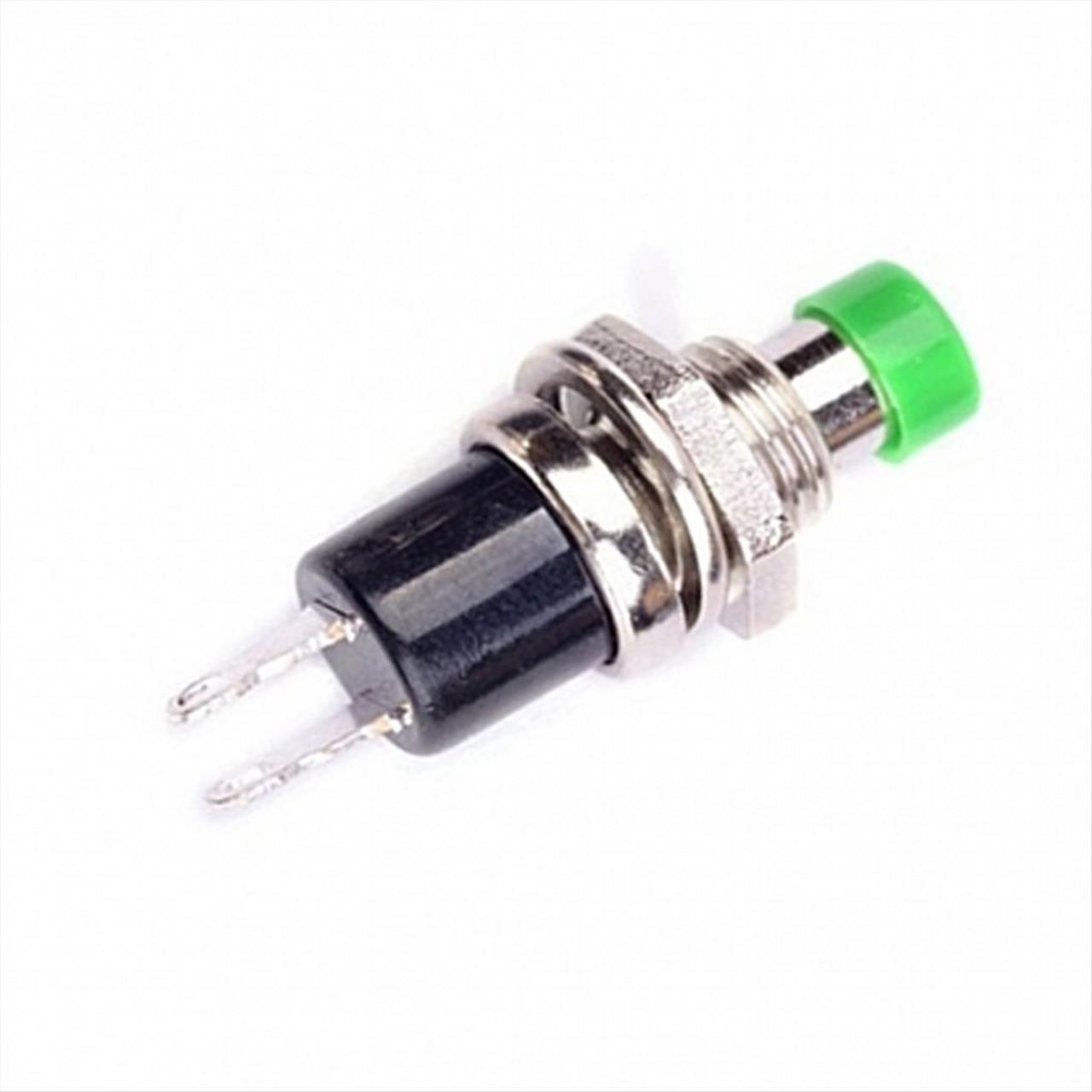 Διακόπτης button push on, 2P, Φ7, 3(1.5)A/125(250)V AC, μεταλλικός πράσινος, PB05B-U HNO