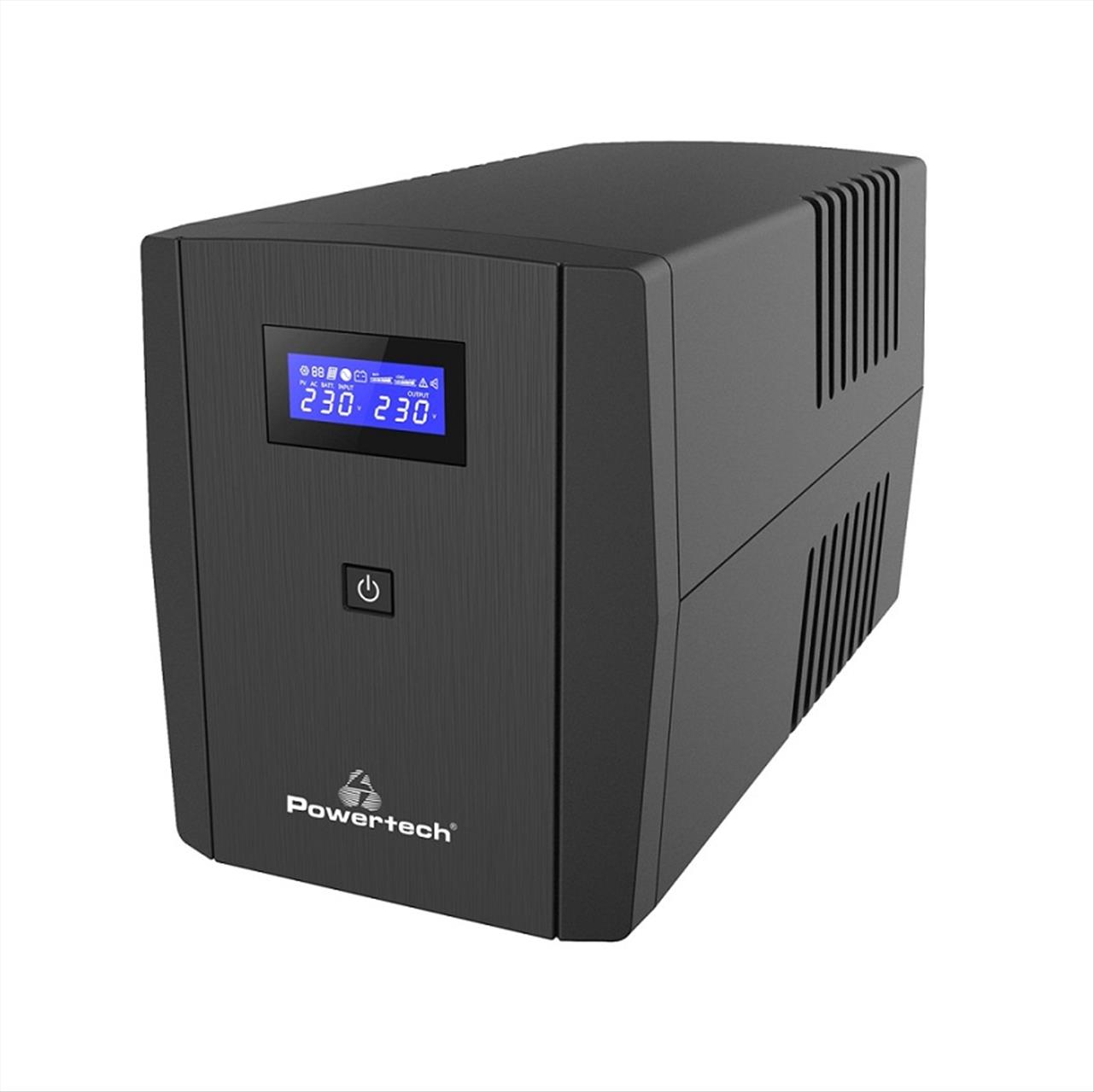 POWERTECH UPS Line Interactive PT-1297 με οθόνη, 1500VA, 900W, 4x Schuko, 2x RJ45/RJ11, USB Type B