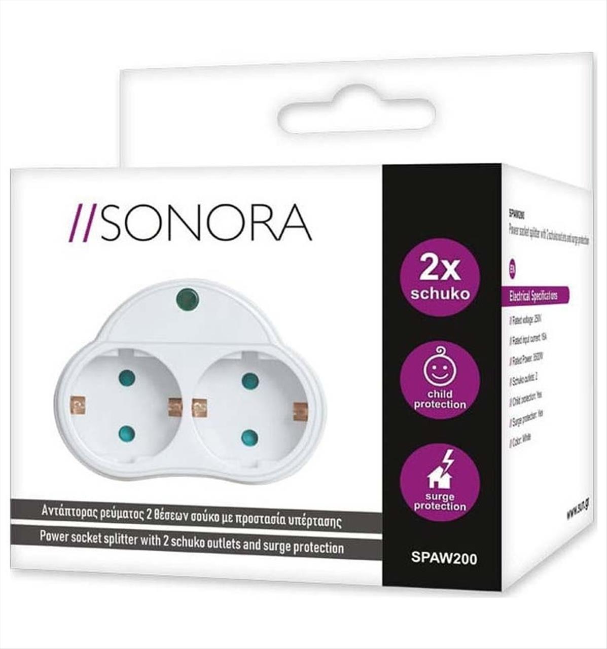 Αντάπτορας ρεύματος Sonora λευκός SPAW200 ταφ ασφαλείας 2 θέσεων