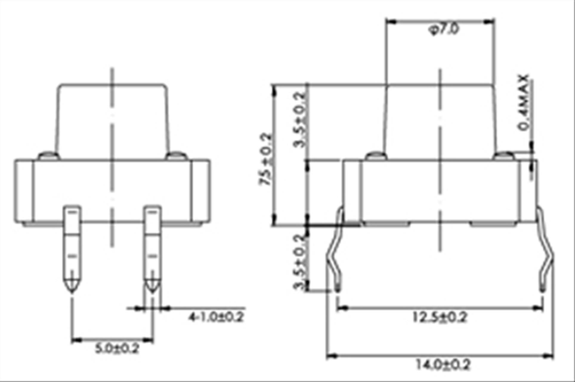 Διακόπτης button TACT, 12x12mm, 7.50mm, 180gF, TVGP01 (1103BAM) JNF