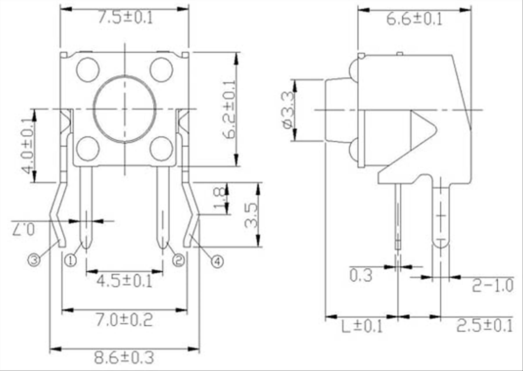 Κατάστημα / Ηλεκτρονικά / Παθητικά εξαρτήματα / Διακόπτες / Διακόπτης button TACT, 6x6mm, 4.30mm, 180gF, THDP08-043BB JNF