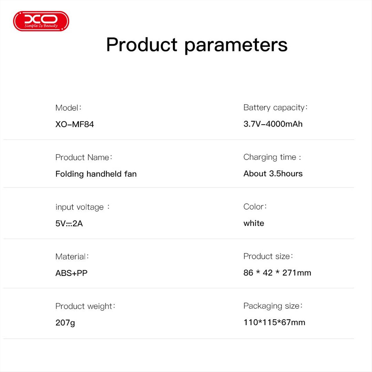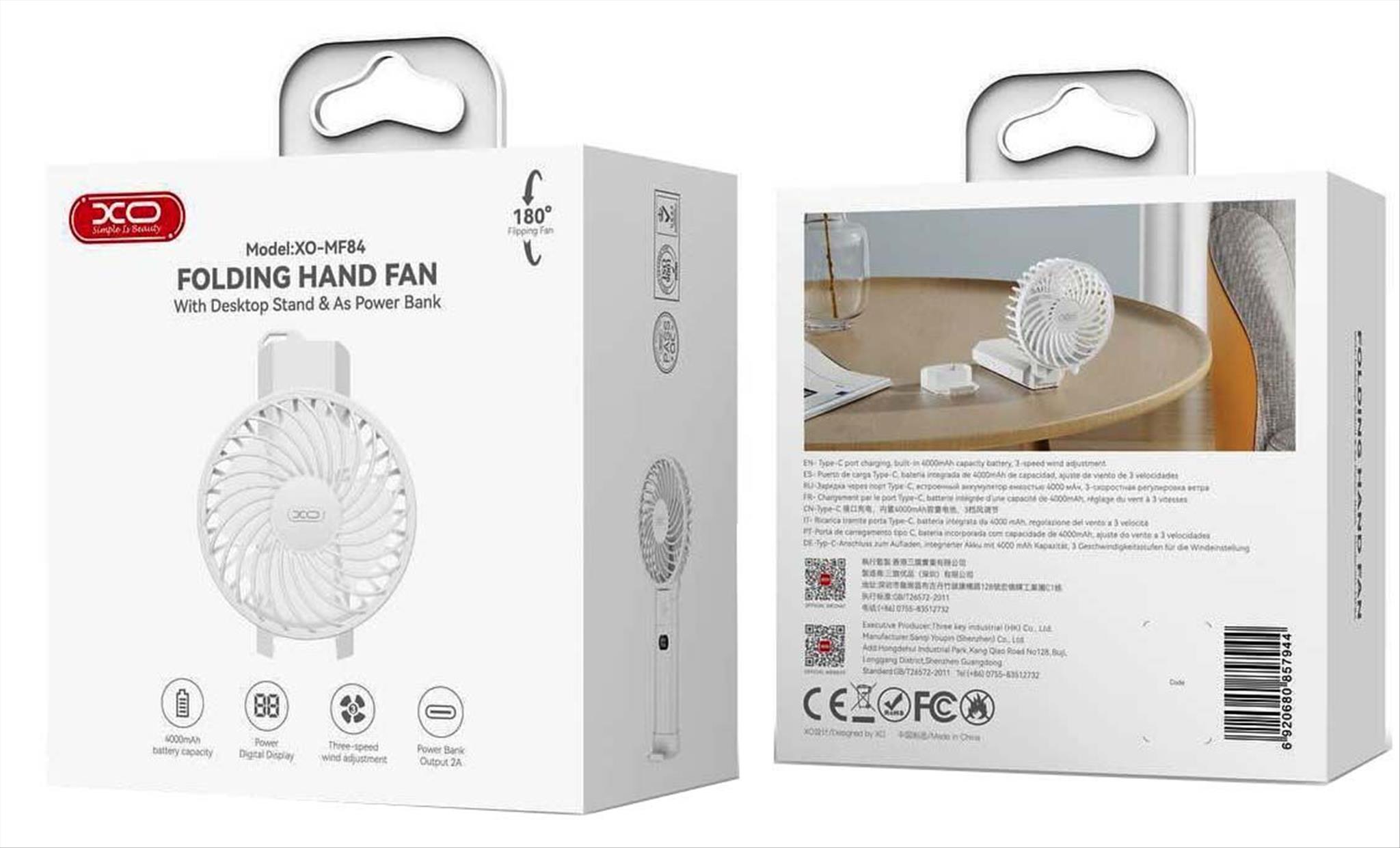 Κατάστημα / Αυτοκίνητο - Συσκευές / Ανεμιστήρες / Ανεμιστήρας αναδιπλούμενος XO MF84, χειρός, με φόρτιση και βάση, 4000mAh